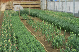 im geschlossenen Gewächshaus fühlen die Tulpen